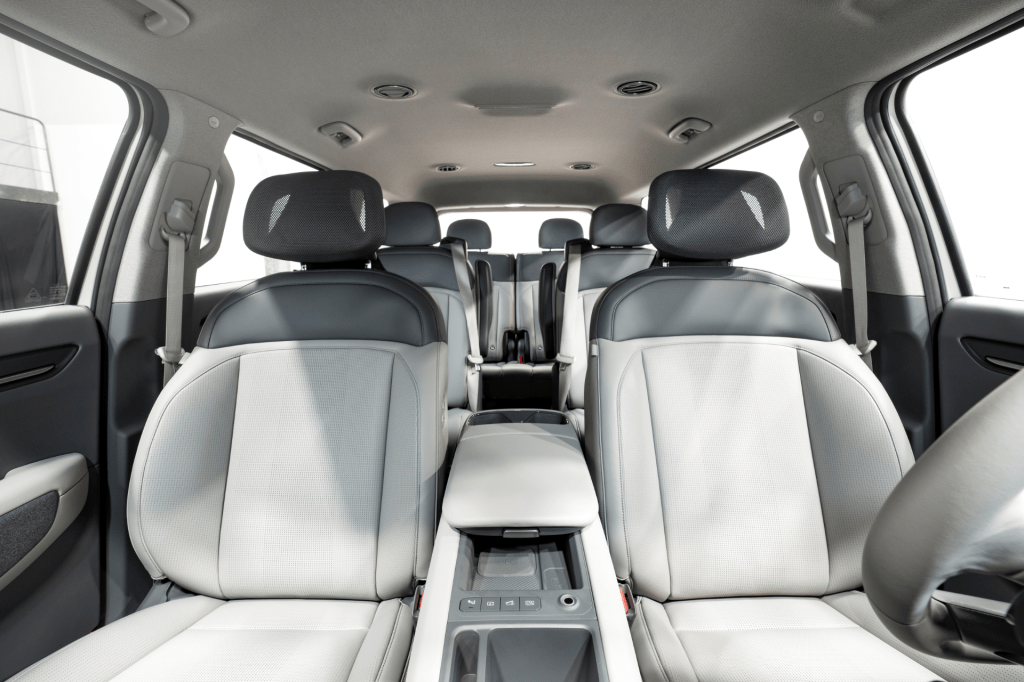 실내는 E-GMP 플랫폼의 특성을 적극 살려, 긴 휠베이스와 평평한 바닥으로 공간이 넓게 느껴지도록 만들었습니다. 시트와 센터 콘솔, 도어 등 실내를 이루는 요소들도 정제된 느낌이 들도록 디자인해 공간감을 더 키웠다고 합니다.