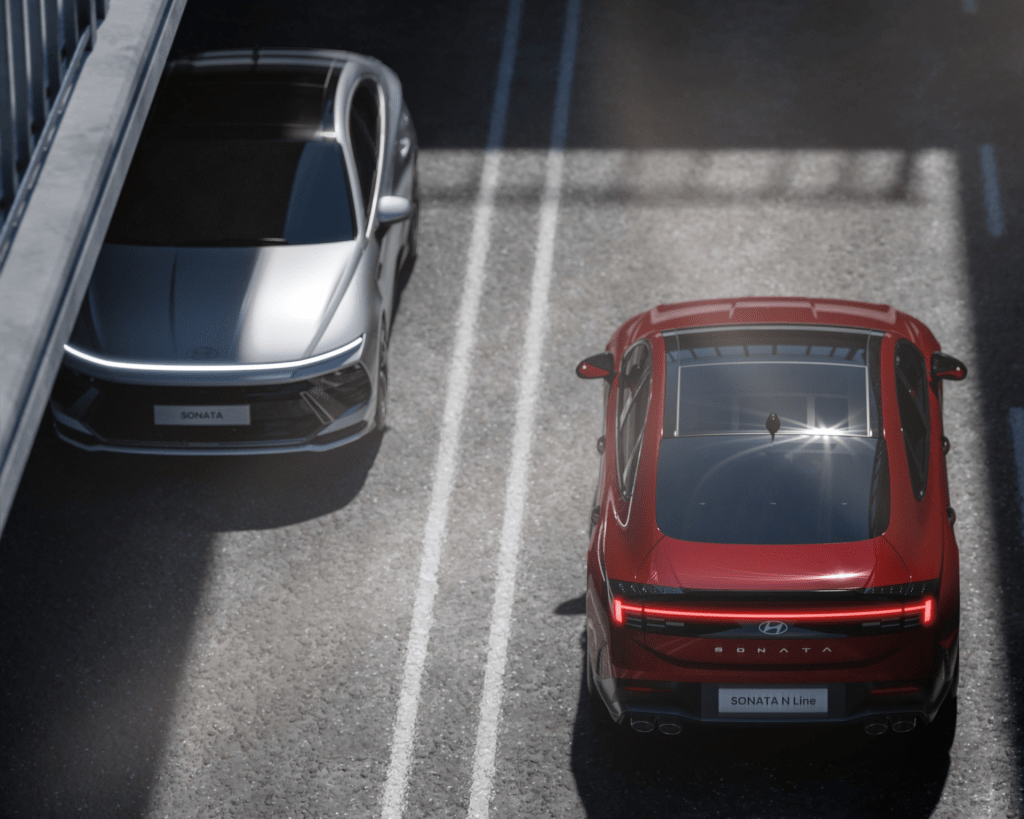 현대차는 브랜드 디자인 정체성을 나타내는 표현인 ‘센슈어스 스포티니스(Sensuous Sportiness, 감성을 더한 스포티함)’를 바탕으로 한층 넓고 날렵한 인상을 더해 스포츠 세단 느낌의 역동성을 강조했다고 하는데요. 8세대 출시 후 1.6L 터보 모델을 시작으로 2021년형 모델부터 전 모델로 확대해 썼던 ‘쏘나타 센슈어스’라는 이름을 생각해 보면, 부분변경 전에 센슈어스에 힘을 실었다면 부분변경 후에는 스포티니스에 힘을 싣는 느낌이 듭니다.