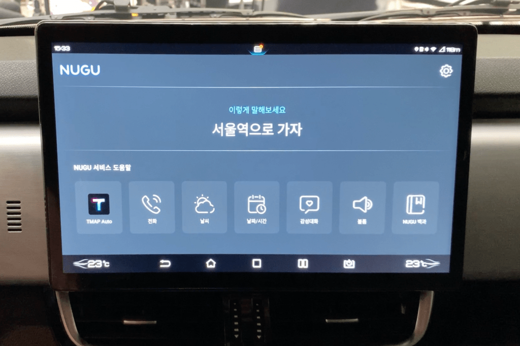 또한 티맵모빌리티와의 협업을 통해 ‘티맵(TMAP) EV 전용 내비게이션’을 담아, 운행 중 배터리 잔량을 바탕으로 표시되는 주행가능 범위, 목적지 경로 확인, EV충전소 안내 등 국내 환경을 고려한 EV 특화 기능을 사용할 수 있습니다. 아울러 SK 텔레콤의 인공지능 음성인식 기능인 ‘누구 오토(NUGU auto)’ 앱도 기본으로 설치되어 음성 명령으로 내비게이션 설정 및 전화걸기 등 다양한 기능을 활용할 수 있습니다.