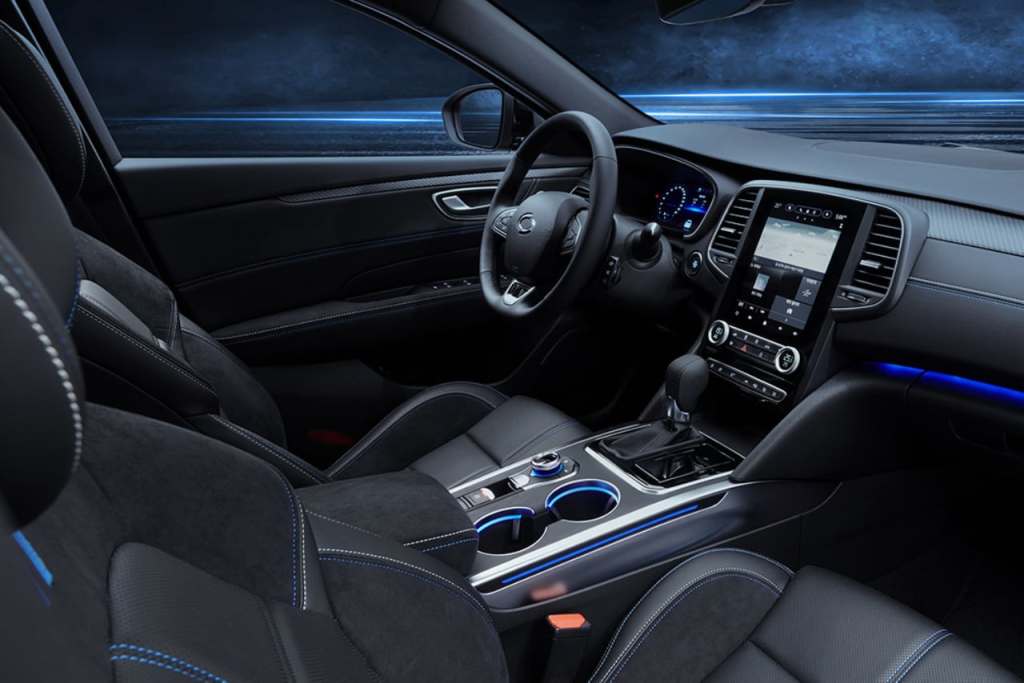 SM6 TCe 300 인스파이어는 차체 외부의 일부 장식 요소에 어두운 색을 넣고 전용 19인치 알로이 휠을 다는 등 ‘다크 익스테리어’를 개념으로 꾸미는 한편, 실내는 여러 부분에 알칸타라 내장재를 쓰고 르노 그룹의 스포츠 브랜드인 알핀(Alpine)의 상징색인 블루(파란색)를 쓴 스티치(재봉선)과 장식을 더한 것이 특징입니다.