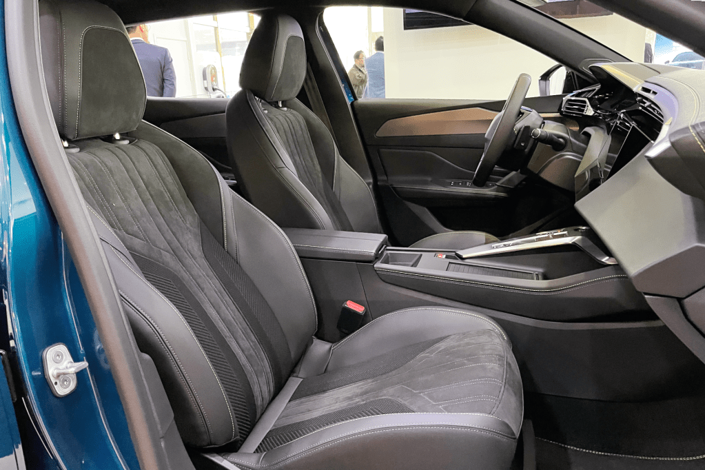 인포테인먼트 스크린 아래에 배치한 물리 조작부는 인터페이스가 터치식이어서 아주 얇습니다. 전자식 기어 셀렉터는 공간을 많이 차지하지 않아 센터 콘솔 수납 공간은 충분하고요. 사전공개 때 전시된 GT 모델을 보면 대시보드와 도어 트림 재질은 아주 고급스럽지도, 아주 값싸 보이지도 않는 정도입니다. 대신 앞좌석은 재질과 형태 모두 스포티한 느낌을 주기에 충분합니다.