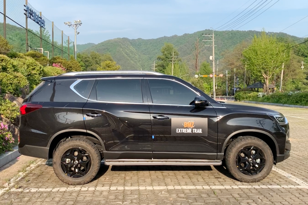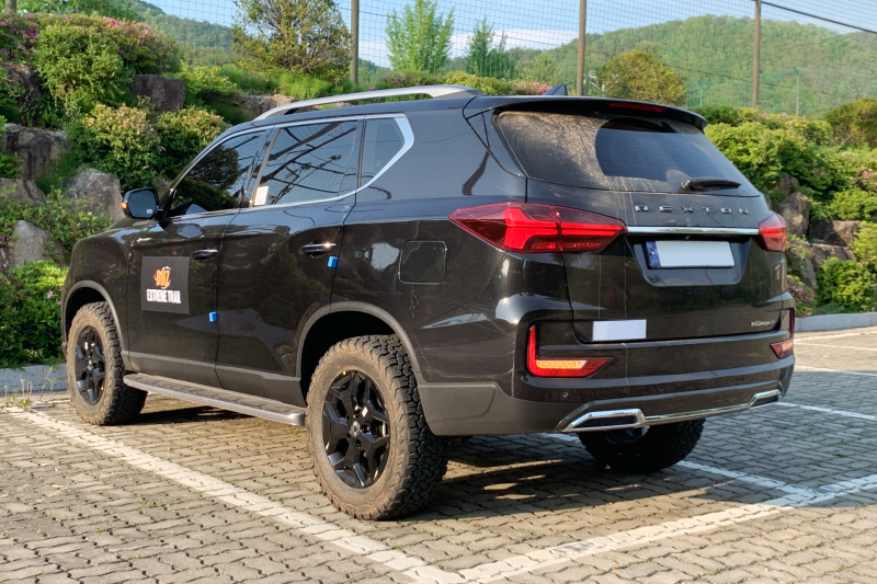 시승차는 중간급 노블레스 트림이다. 노블레스 트림은 20인치 스퍼터링 휠과 255/50 R20 타이어가 기본으로 들어가지만, 시승차에는 KG 모빌리티가 준비한 오프로드 코스 주행을 고려해 렉스턴 스포츠 및 칸의 어드벤처 패키지에 들어가는 18인치 블랙 휠과 BF 굿리치 올 터레인 타이어가 끼워져 있었다. 휠 센터 캡에도 둥근 날개 로고가 들어간다.