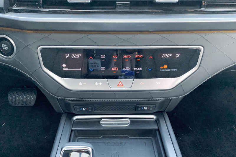 대시보드 가운데 공기 배출구 아래에 자리를 잡은 공기 조절장치 패널은 인터페이스가 버튼식에서 터치식으로 바뀌었다. 기능과 구성은 버튼식일 때와 같아 터치 영역이 크고, 터치할 때에는 소리로 터치 여부를 알려주고 기능 온/오프 상태는 빨간색 표시등으로 확인할 수 있다. 터치 패널 표면이 고광택 처리가 되어 있어 반사가 심하긴 하지만 조절 항목 위치는 어렵지 않게 알아볼 수 있다. 유일하게 아래쪽 가운데에 있는 비상등 스위치만 물리 버튼으로 되어 있다.