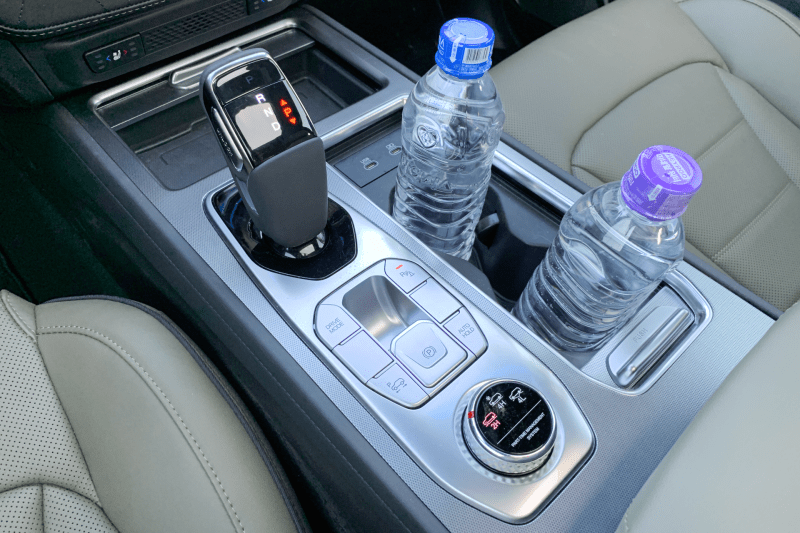 앞좌석 사이에 있는 센터 콘솔 뒤쪽에는 전과 마찬가지로 뒷좌석용 공기 배출구, 12V 소켓과 충전용 USB-C 포트 두 개가 마련되어 있다. 뒷좌석용 USB 포트도 이번에 C타입으로 바뀌었다. 센터 터널이 높지 않아 좌우 이동이 편리한 것도 이전과 같다.