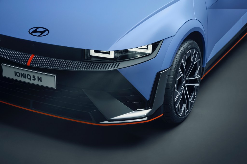 헤드램프 아래쪽은 냉각장치 쪽으로 공기가 더 많이 들어갈 수 있도록 일반 아이오닉 5와 다른 디자인으로 만들었습니다. 그 덕분에 냉각 면적이 넓어진 것은 물론, 구동용 전기 모터와 배터리에 모두 강화된 냉각 장치를 배치하는 등 전반적인 냉각 성능을 높여 트랙 주행 중 배터리 성능이 낮아지는 현상을 줄였습니다.