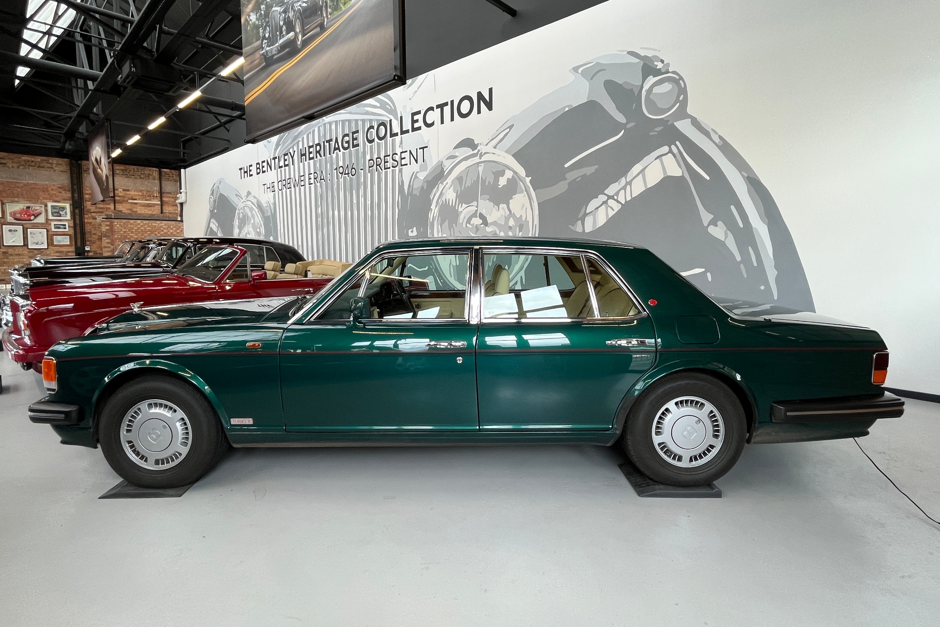 벤틀리는 T 시리즈의 뒤를 잇는 모델로 새로 개발한 섀시를 바탕으로 한 뮬산(Mulsanne)을 1980년에 내놓습니다. 상당히 현대화된 스타일과 장비가 특징이고, 과거와 달리 상당히 각지고 낮은 모습으로 만들어진 것이 특징이죠. 물론 근본적으로는 형제차인 롤스로이스 실버 스피릿과 거의 같았지만, 여전히 L 시리즈 V8 6.75L 엔진을 쓰는 전통을 이어 나갔습니다.