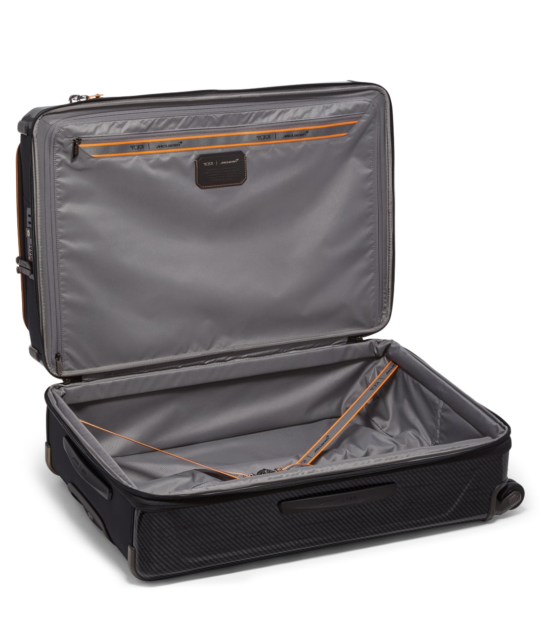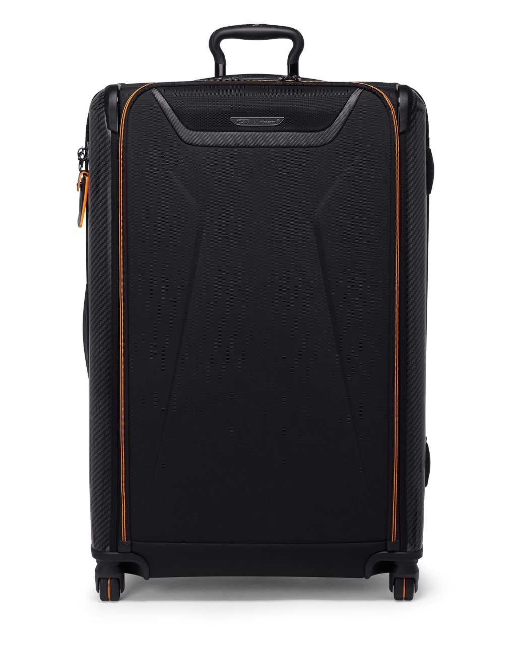 맥라렌과 투미는 2019년에 파트너십을 맺고 꾸준히 맥라렌 X 투미 여행 컬렉션 제품을 내놓고 있는데요. 이번에 선보인 제품은 ‘에어로 롤링 트렁크(Aero Rolling Trunk)’와 ‘에어로 장거리 여행 패킹 케이스 캐리어(Aero Expanded Trip Packing Case)’로, 맥라렌 스포츠카의 디자인에서 영감을 얻은 디자인과 경주차에 쓰이는 소재 등을 반영한 것이 특징입니다. 아울러 맥라렌의 상징인 파파야 오렌지 색을 강조 요소로 활용했고요.
