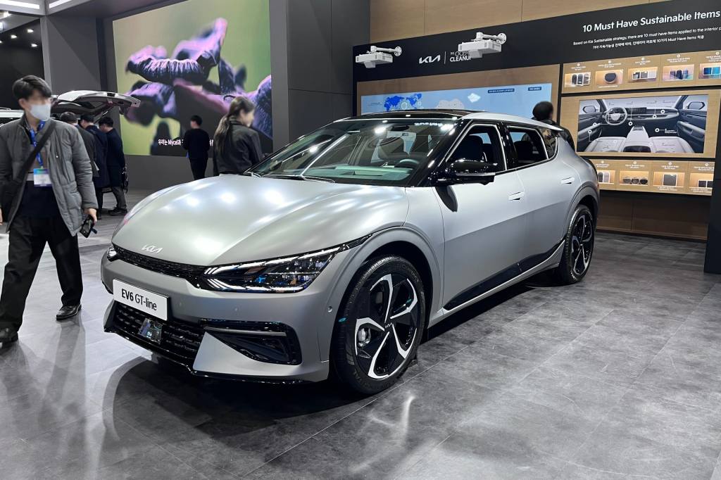 전시 내용에서 눈길을 끈 것은 EV6의 열 가지 친환경 소재와 그 소재가 쓰인 부분들을 알기 쉽도록 배치해 놓은 전시물이었는데요. 출시 당시 힘주어 알린 내용이라 새로울 것은 없지만, 평소 접하고 체감하기 어려운 내용을 보는 사람이 쉽게 이해할 수 있게 만들어 놓아 흥미를 더했습니다.