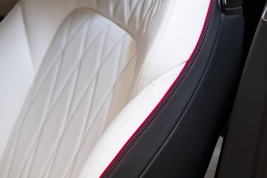 실내는 흰색 다이아몬드 퀼티드 시트, 뮬리너 화이트와 그랜드 블랙을 위아래로 배치한 듀얼 피니시 베니어로 치장했습니다. 한정 판매되는 10대는 두 가지 외장 컬러, 다섯 가지 액센트 컬러를 바탕으로 모두 서로 다른 조합으로 만들어집니다.
