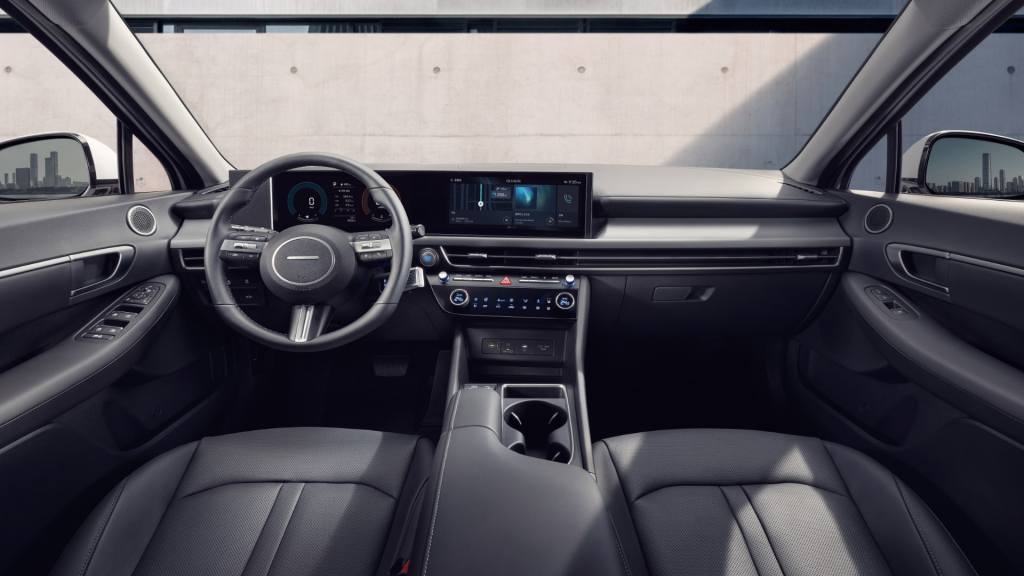 운전 환경은 쏘나타 디 엣지의 하위 트림인 프리미엄과 비슷해, 대시보드에 4.2 인치 컬러 LCD가 들어간 계기판과 12.3 인치 내비게이션/인포테인먼트 디스플레이가 배치되어 있습니다. 아울러 스티어링 컬럼에 전자식 기어 셀렉터가 설치되고요.
