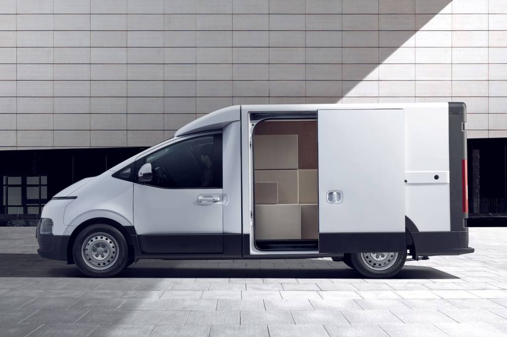 디자인은 물류 특화 모델인 만큼 스타리아를 바탕으로 실용성에 초점을 맞춰 주요 요소를 단순하고 견고하게 손질했습니다. 외부 장애물에 긁히기 쉬운 범퍼 아래쪽과 모서리, 측면 아래는 검은색 플라스틱으로 처리했고, 카고 및 카고 냉동 모델은 차체 앞쪽과 상자형 적재 공간 사이에 자연스러운 곡선을 넣은 전방 루프 스포일러와 가니시를 넣었습니다. 스타리아의 상징적 요소 중 하나인 심리스 호라이즌 일자형 주간 주행등이 들어가는 자리는 검은색 플라스틱으로 마무리했습니다.