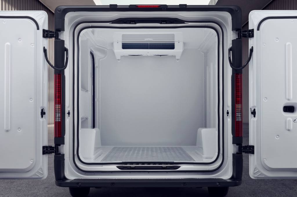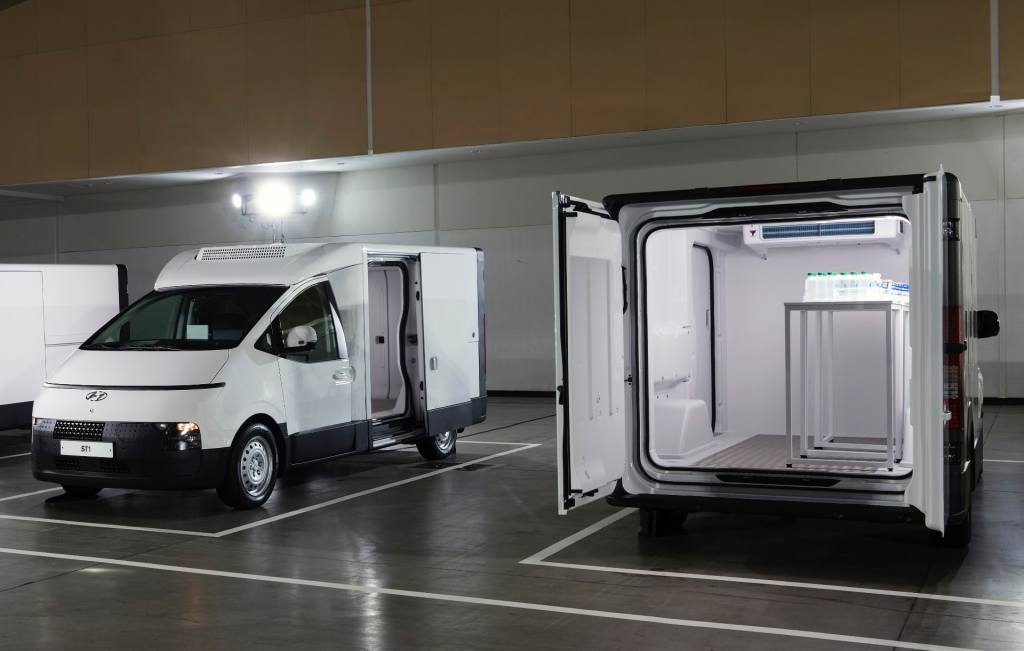 카고 냉동 모델은 냉동기 전원으로 차에 설치된 고전압 배터리를 쓰고 인포테인먼트 시스템으로 냉동기를 제어하는 기능이 기본으로 들어갑니다. 냉동기 컨트롤러는 인포테인먼트 화면의 냉동 애플리케이션과 연동돼, 운전석에서 냉동기 온도를 확인할 수 있고 냉동기를 켜고 끄거나 온도를 설정하는 등 제어를 할 수 있습니다. 또한 카고 온도 이탈 경고 기능도 있어 냉동기가 설정한 온도에서 벗어날 경우 계기판 경고등과 소리로 알려 줍니다.