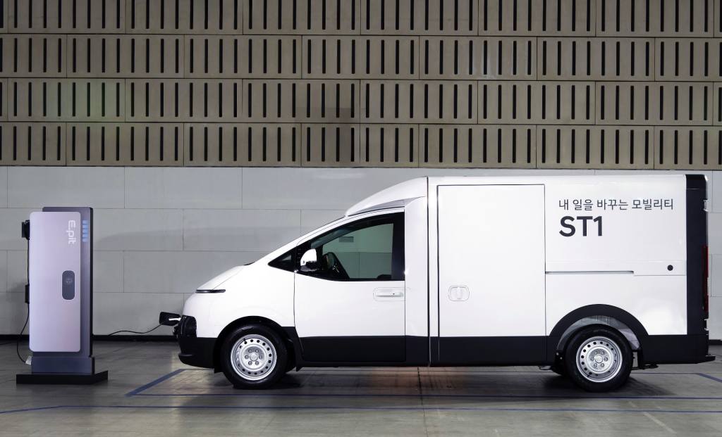 ST1은 현대의 다인승 승용 및 상용 모델인 스타리아에 쓰인 내연기관 기반 3세대 플랫폼을 바탕으로 화물 운송 편의성을 고려해 저상화하면서 전기 동력계를 쓰는 전기차 플랫폼으로 새로 개발한 것이 특징입니다. 그래서 탑승공간을 포함한 차체 앞쪽은 스타리아와 디자인과 여러 부품을 공유하고, 차체 뒤쪽은 휠베이스와 뒤쪽 트랙(뒷바퀴 중심 사이의 거리)을 키워 적재능력을 높였습니다.