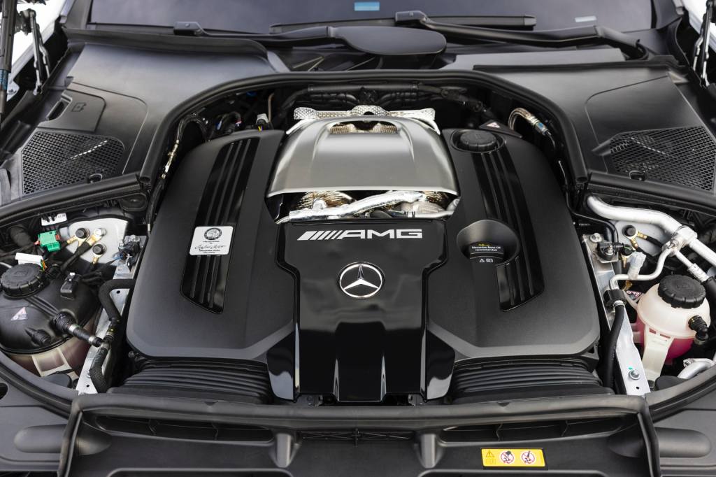 동력계 및 구동계 구성은 고성능을 고려해 설계한 플러그인 하이브리드 시스템이 바탕을 이루는 최신 메르세데스-AMG E 퍼포먼스 개념을 반영했습니다. 보닛 아래에는 AMG V8 4.0L 가솔린 트윈터보 엔진을 얹었고, 엔진 뒤에 연결된 다판 클러치식 AMG 스피드시프트 MCT 9단 자동변속기로 전달된 동력은 AMG 퍼포먼스 4MATIC+ 사륜구동 시스템을 통해 앞바퀴와 뒷바퀴로 전달됩니다. 또한 뒤 차축에는 2단 변속기 및 전자제어 차동제한 디퍼렌셜과 통합된 영구 여자 동기 모터(PSM, Permanently excited synchronous motor)가 설치되어, 필요한 때 뒷바퀴에 빠르고 강력한 동력을 전달합니다.