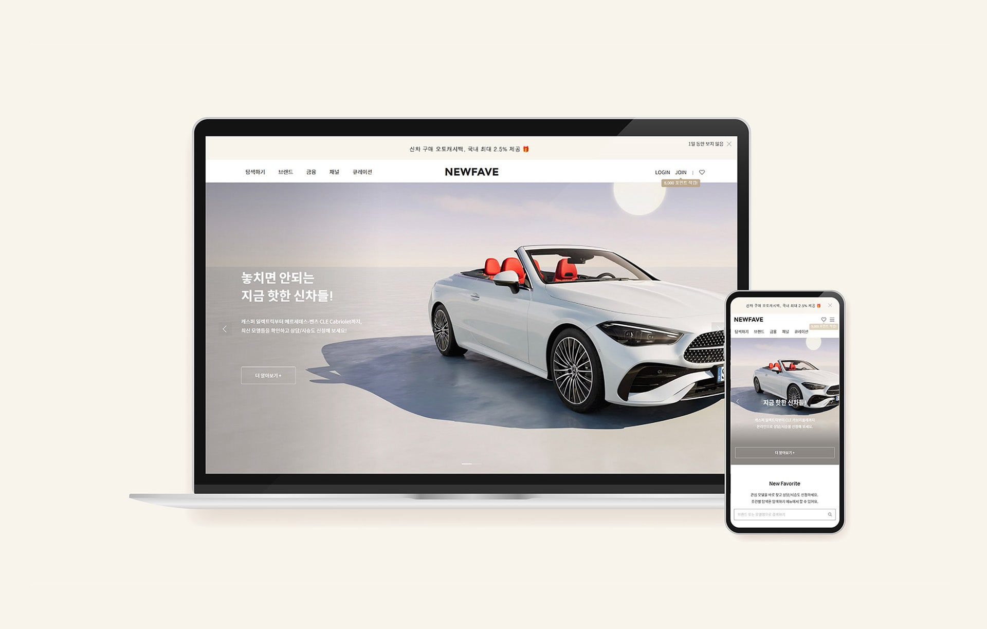 뉴페이브는 새 차 구매 과정에 필요한 정보와 링크 등을 확인할 수 있는 포털 서비스로, 관심 차에 대한 조건 탐색부터 온라인 상담·시승 신청, 금융 및 보험 상품 제안, 그리고 전문적 시각의 큐레이션 등을 제공합니다. 특히, 자동차 제조사의 온라인 판매 채널들과 소비자가 한 곳에서 연결될 수 있도록 지원하는 것이 특징이라고 합니다.