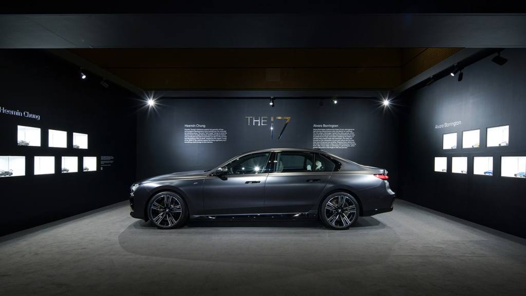 BMW i7 프리즈 서울 에디션은 BMW 인디비주얼 맞춤 제작 과정을 통해 차체 외부는 무광 BMW 인디비주얼 프로즌 딥 그레이으로 칠했고, 실내는 BMW 인디비주얼 그란 루쏘 풀 레더 메리노 인테리어 패키지와 더불어 스모크 화이트 색 메리노 가죽으로 구성했습니다.