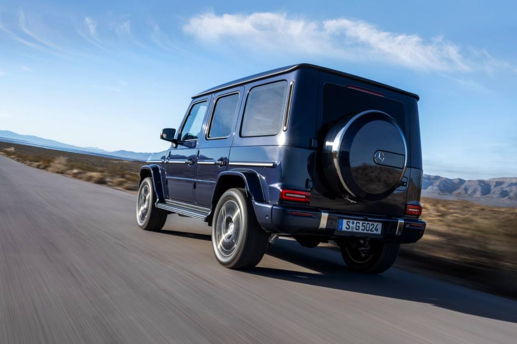 겉모습은 기본적으로 크게 달라지지 않았습니다. 각진 5도어 왜건 형태는 데뷔 이후 지금까지 큰 변화 없이 이어진 G-클래스의 상징 요소인 만큼, 형태보다는 세부 요소에 조금씩 변화를 주는 선에서 정리되었습니다. 국내 판매 모델은 AMG 라인으로, 티타늄 그레이 색 20인치 AMG 10 스포크 경량 알로이 휠을 포함해 스포티한 분위기를 내는 항목들로 치장했습니다.